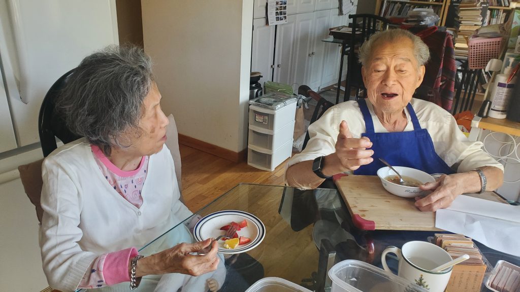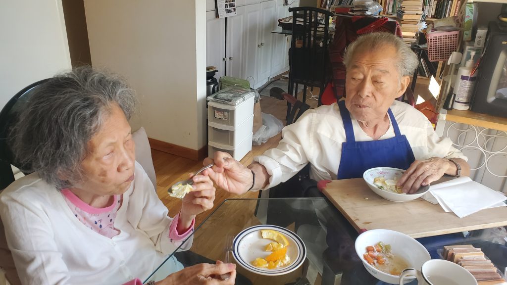 Pastor and Shimu enjoying a meal together before leaving for the hospice.