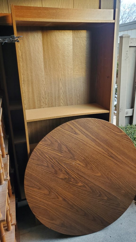 Book Shelves – round wood table has no legs